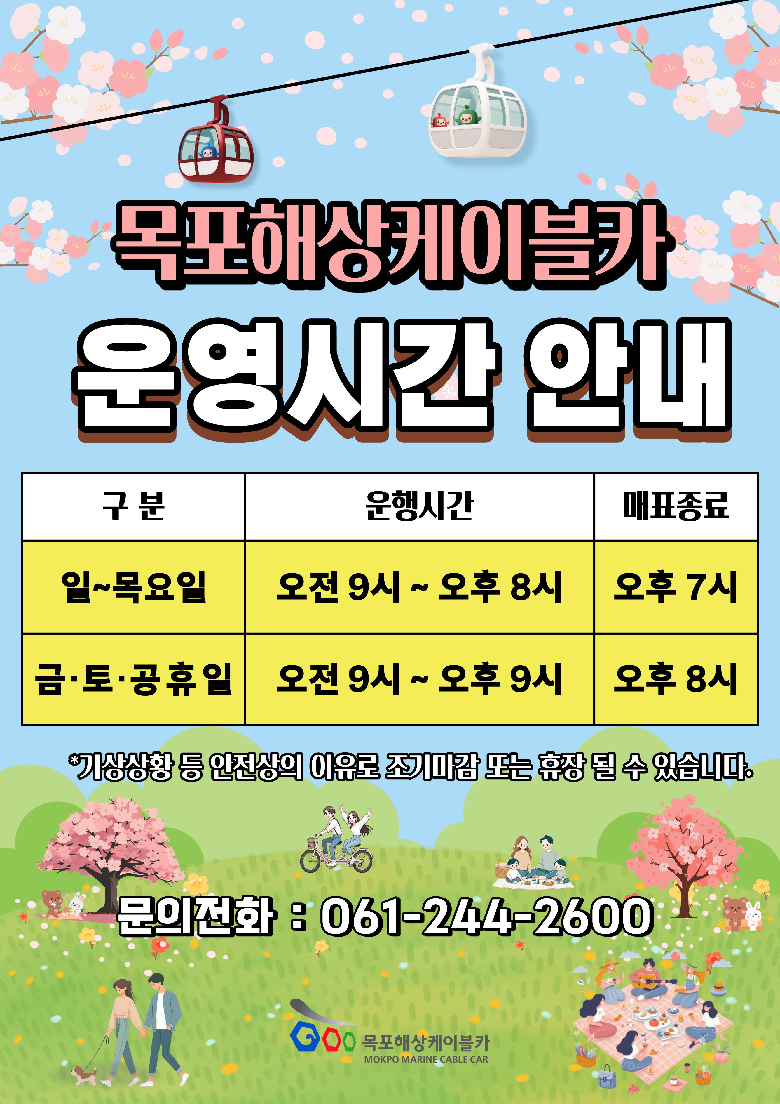 star 기상상황 등 안전상 이유로 사전에 공지없이 조기운행마감 또는 휴장